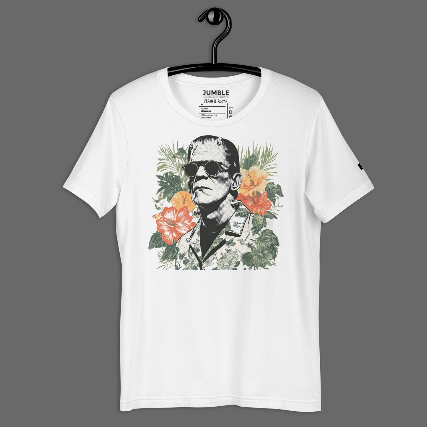 Give your casual fits a hit of tropical weirdness with the Frankie Aloha tee. Featuring a retro-holiday mashup of classic horror and floral prints, this tee combines vintage aloha shirt vibes with a cult icon’s charm. It’s soft, lightweight, and built with the kind of stretch and structure that flatters all body types.