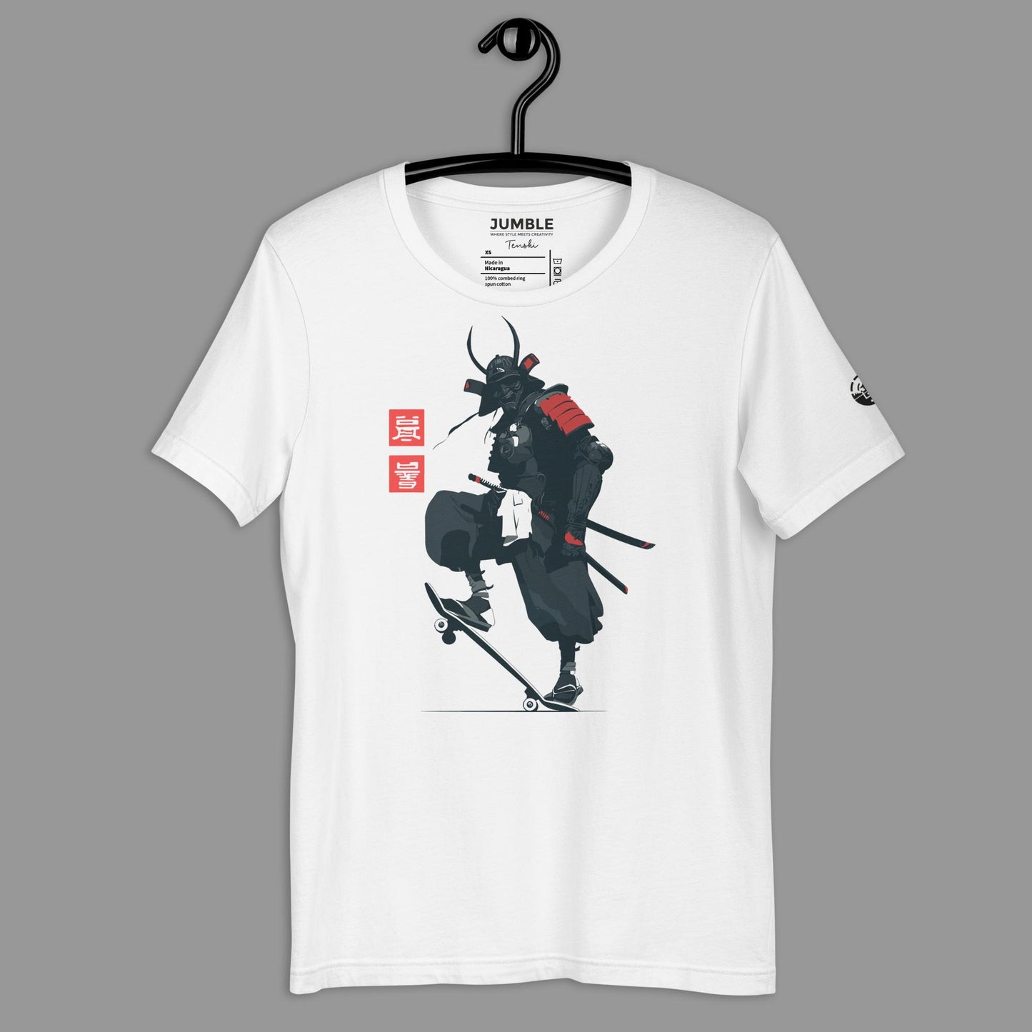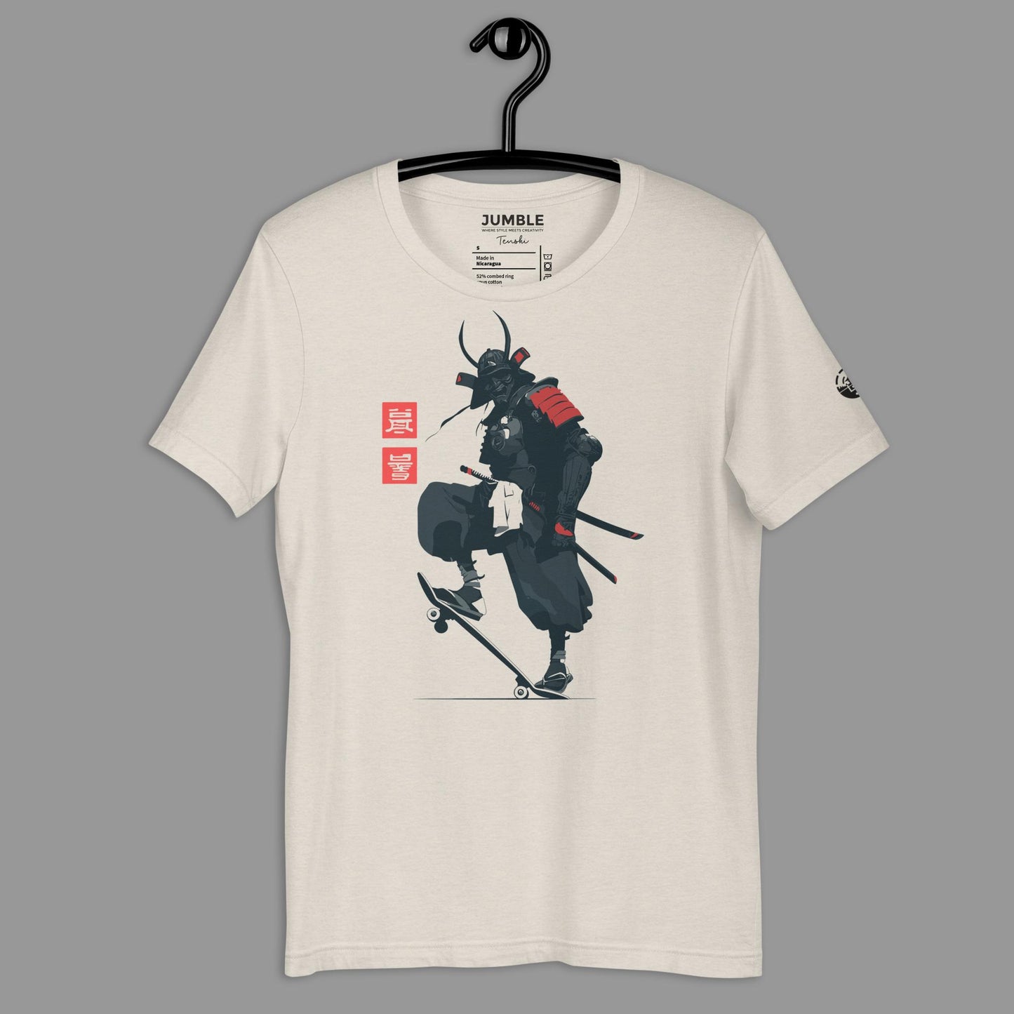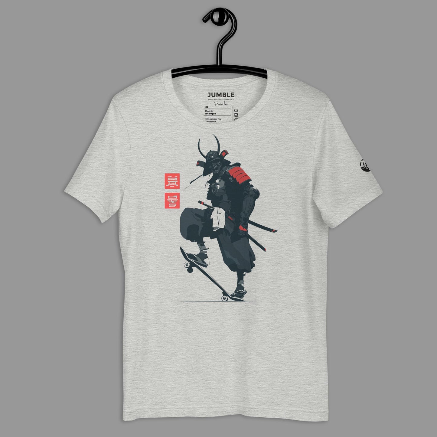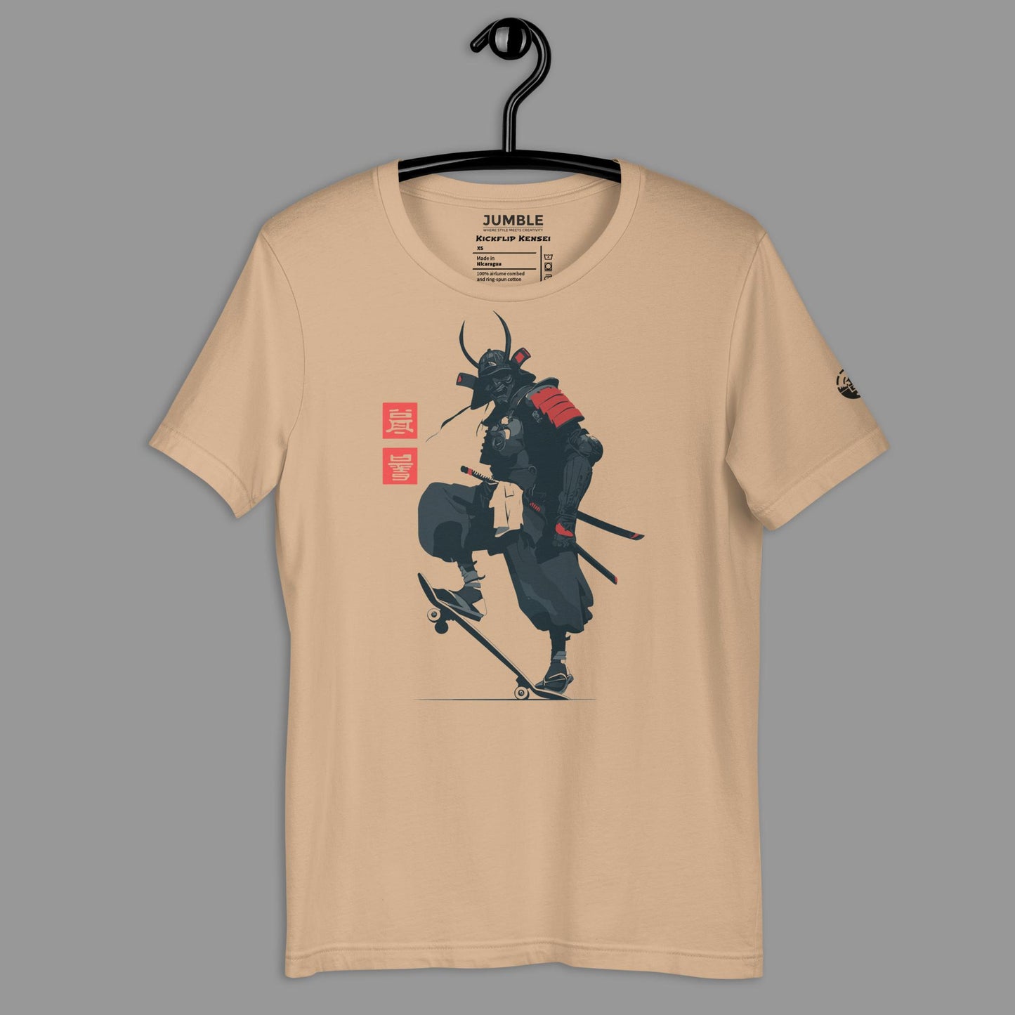 Where ancient warrior code meets skate deck rebellion. The Kickflip Kensei t-shirt features a bold graphic of a modern-day samurai mid-trick, channeling discipline, agility, and style in one clean move. It’s lightweight, super soft, and cut for everyday wear—with just the right amount of stretch for a perfect fit. This tee is for those who carve their own path.