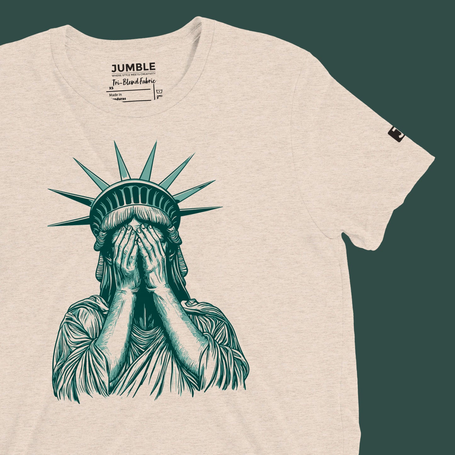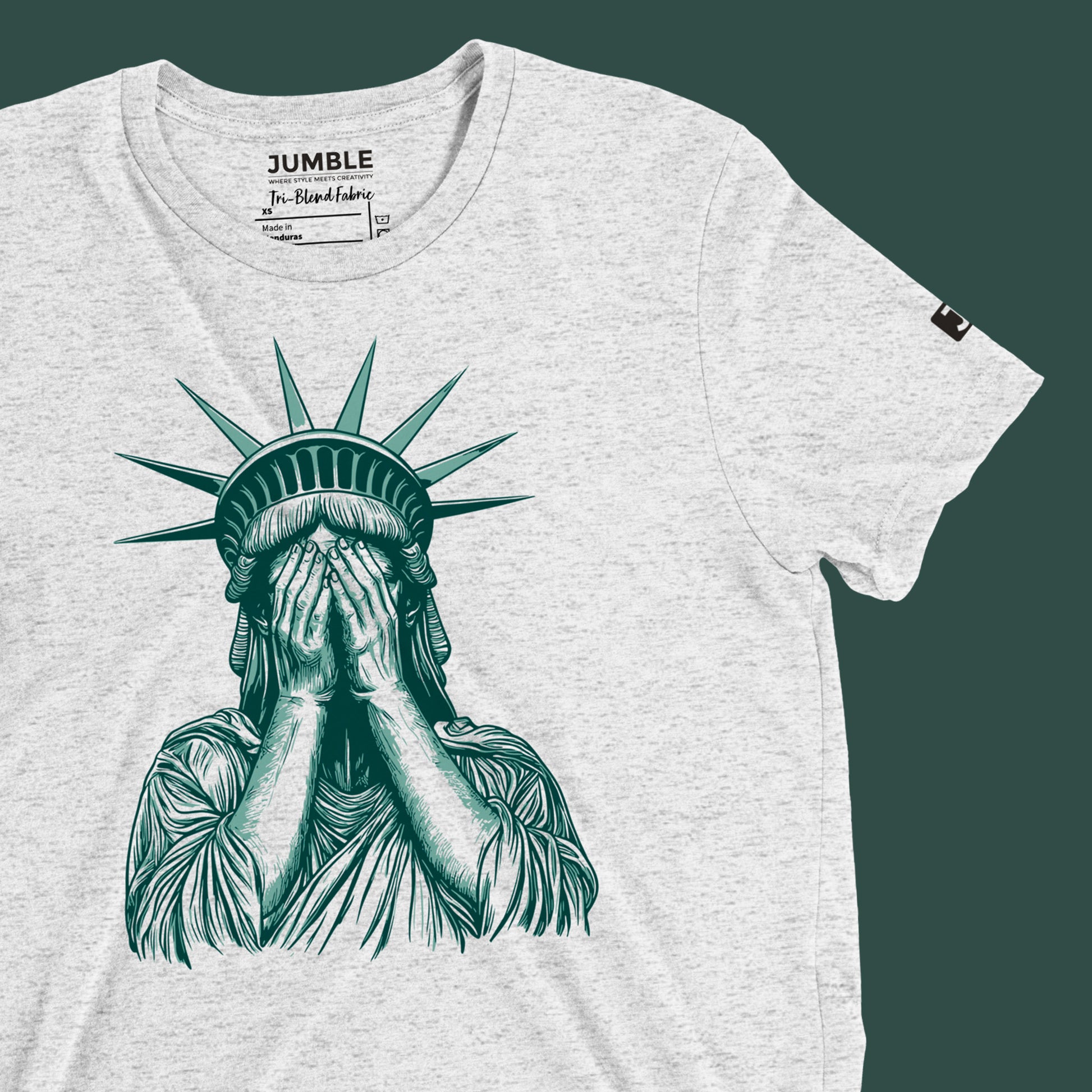Bold in meaning, vintage in feel—Liberty’s Lament returns in this short sleeve tri-blend tee, pairing one of the most recognizable symbols of freedom with a powerful message of reflection and resistance. The distressed Lady Liberty artwork, hands over her face, becomes even more impactful when printed on this ultra-soft, retro-inspired silhouette.