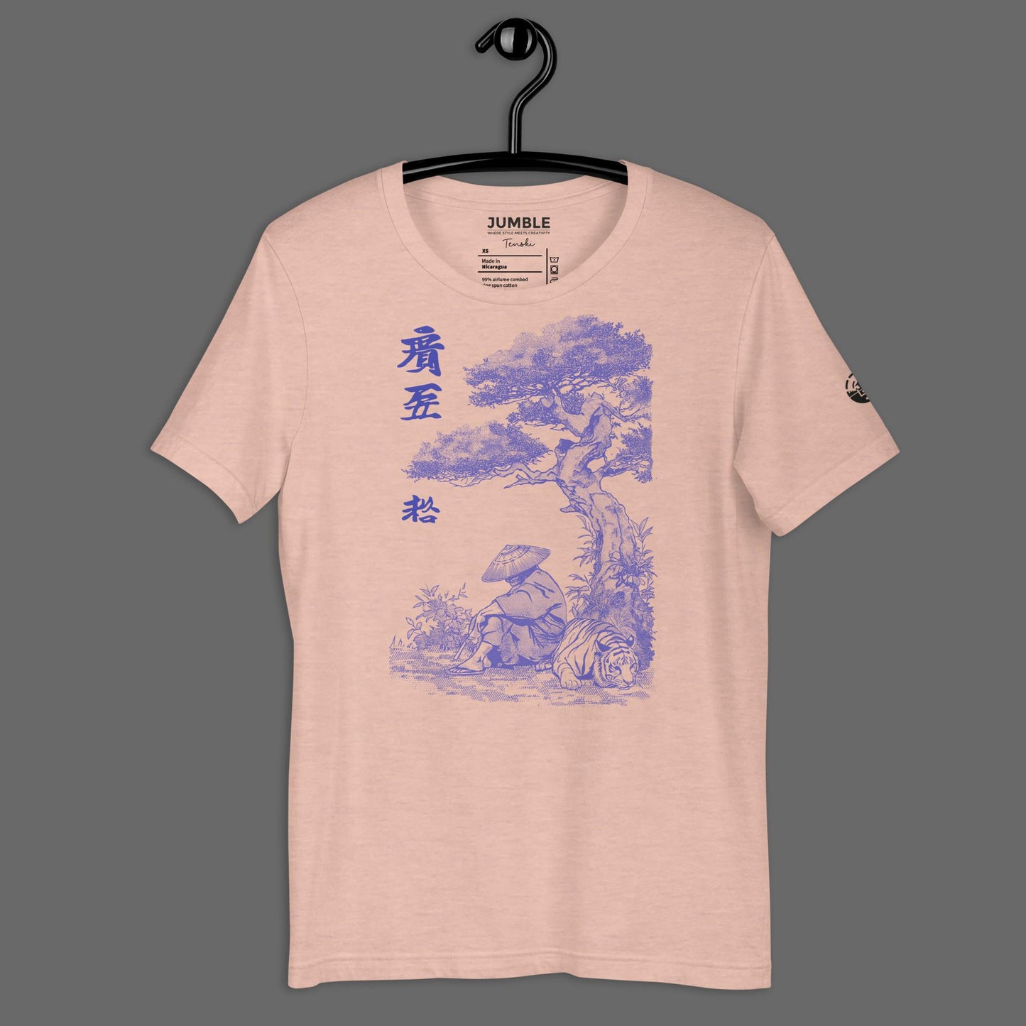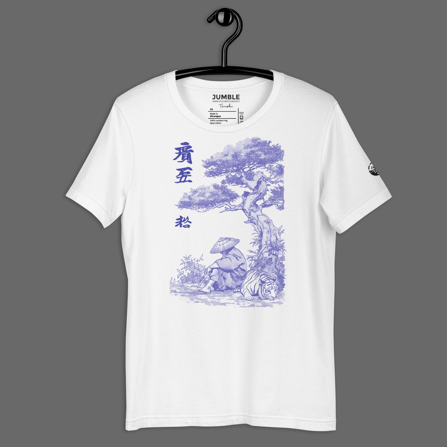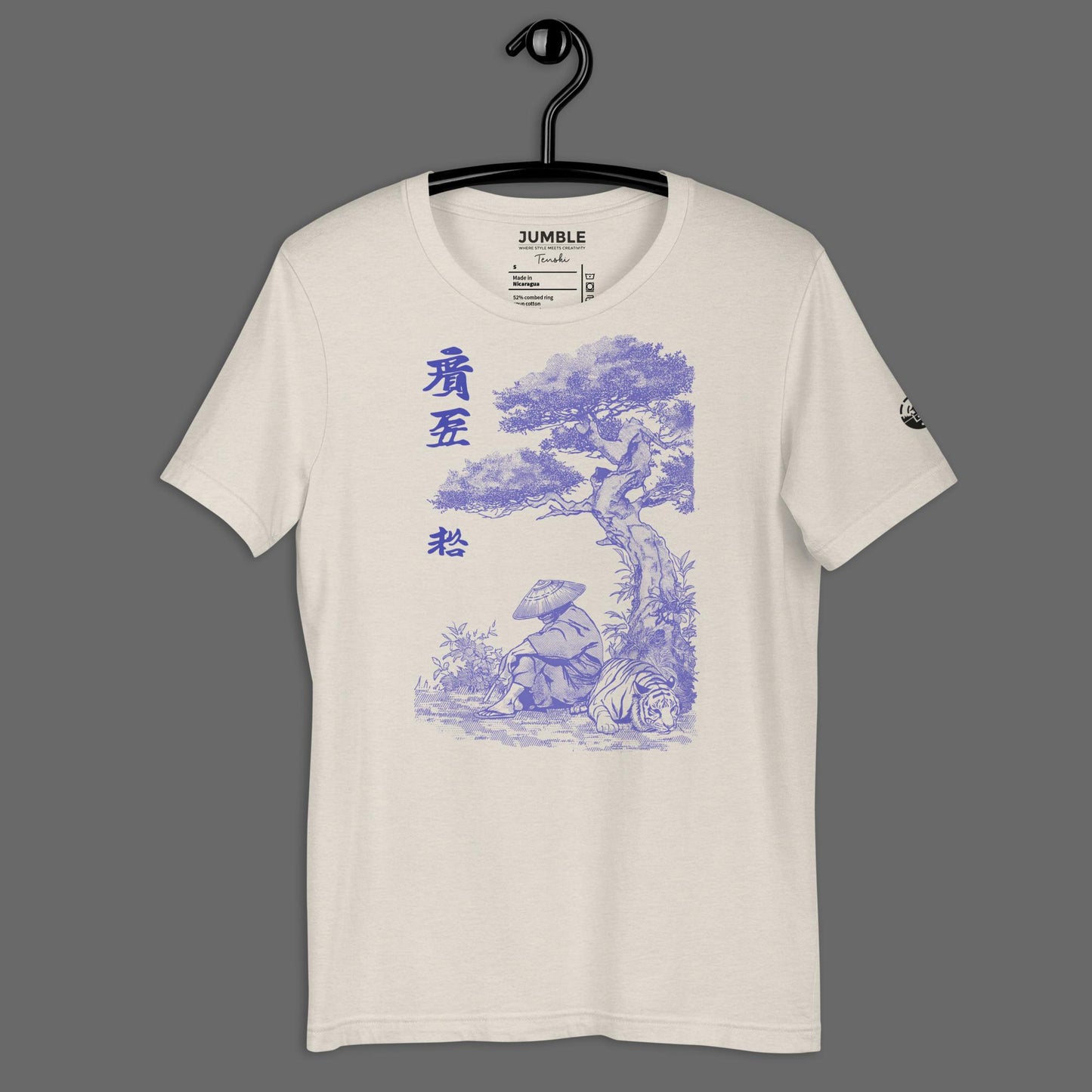 Stillness, strength, and solitude—Resting Blade captures a quiet warrior’s moment beneath an ancient pine. Printed in soft indigo hues on a smooth, breathable tee, this design evokes traditional Japanese ink art with a modern edge. Whether you’re pairing it with laid-back denim or layering under a jacket, this shirt brings calm presence and considered style to any outfit.