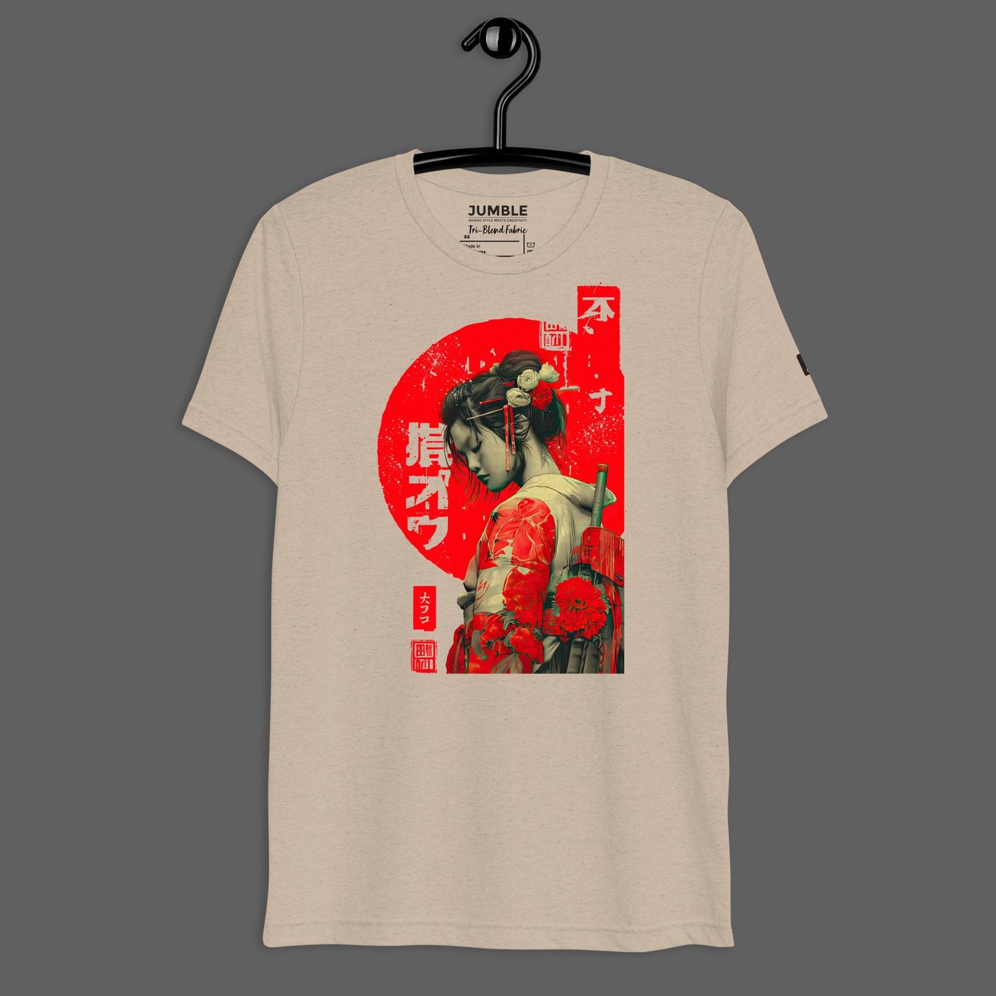 This isn’t just a tee—it’s a quiet declaration. The Hanakiri (花切り) design fuses the grace of a geisha with the silent force of a warrior. The tri-blend fabric gives it a retro, worn-in feel that hugs just right—subtle stretch, vintage finish, serious staying power. Over time, it only gets softer. Like the story behind the art, it wears its legacy well.
