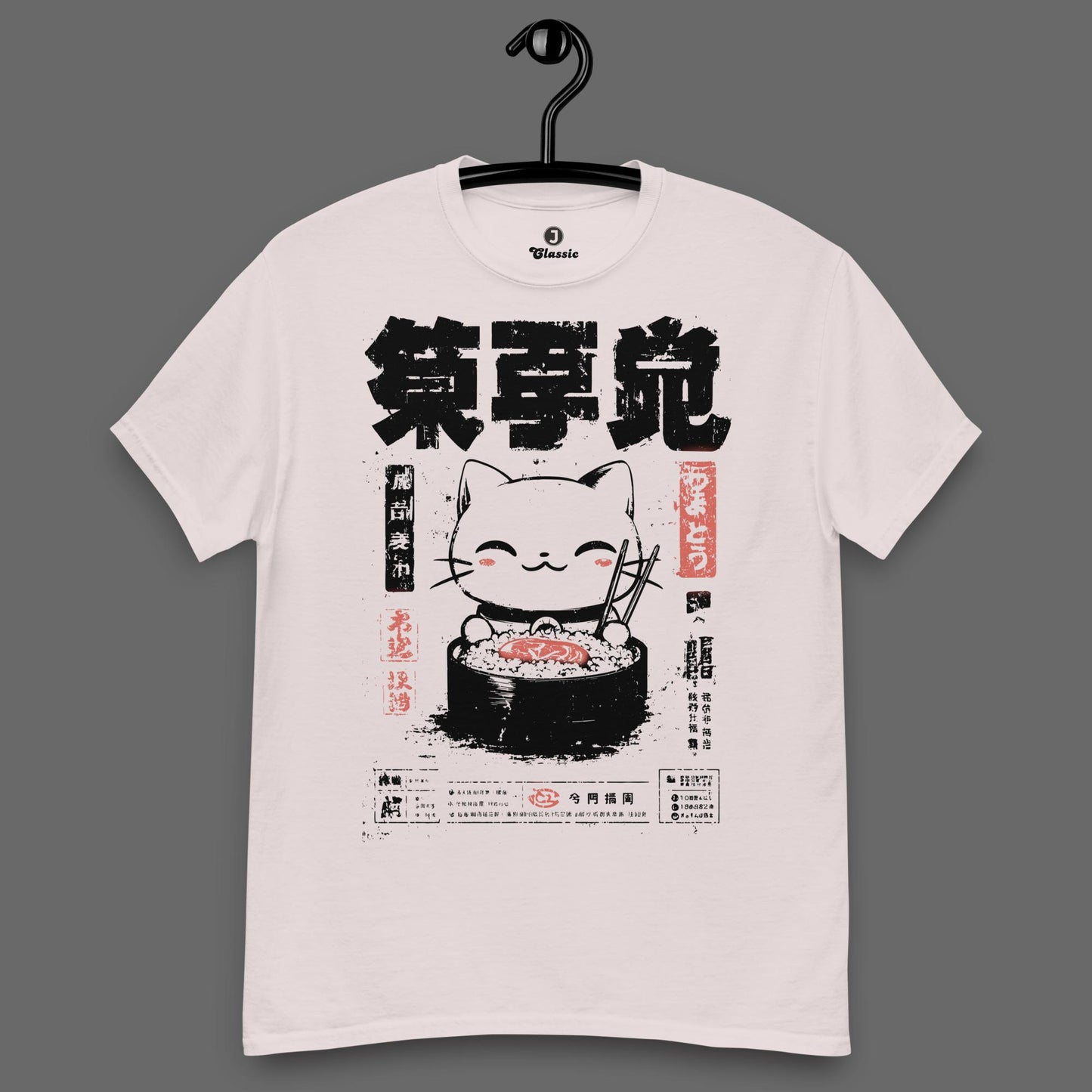 Ideal for fans of kawaii culture, sushi bars, and bold graphic tees