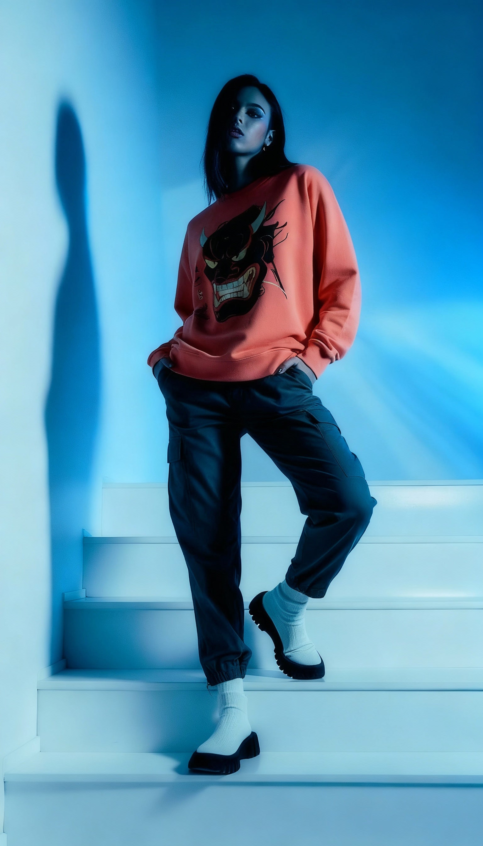 Street-ready, planet-kind. Oni no Kao (“face of the demon”) hits the chest in bold brush lines—ivory horns, razor grin, kanji detail—on a premium raglan crew. A smooth 100% organic-cotton exterior meets plush brushed fleece inside (with recycled fibres) for cloud-soft comfort and a clean, athletic drape. Raglan sleeves and 2×2 rib trims keep it moving with you—equally at home under a jacket or as the statement layer.